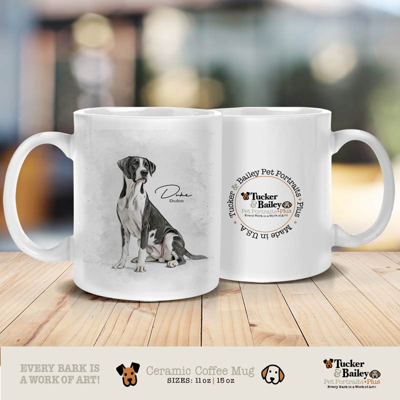 Start your day with a smile and your pet’s adorable face! Our Tucker & Bailey Coffee Mugs feature a custom watercolor-style portrait of your furbaby, making every sip extra special. These sturdy ceramic mugs are perfect for your morning coffee, cozy hot chocolate, soothing tea, or even a cheeky splash of Hennigan’s Scotch. Perfect for everyday use, they’re a fun way to bring your pet’s charm to your kitchen.